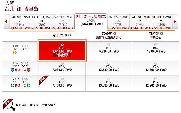 然後確認出發的人數,幣別可以選擇哦!! 這邊以台幣顯示票價~