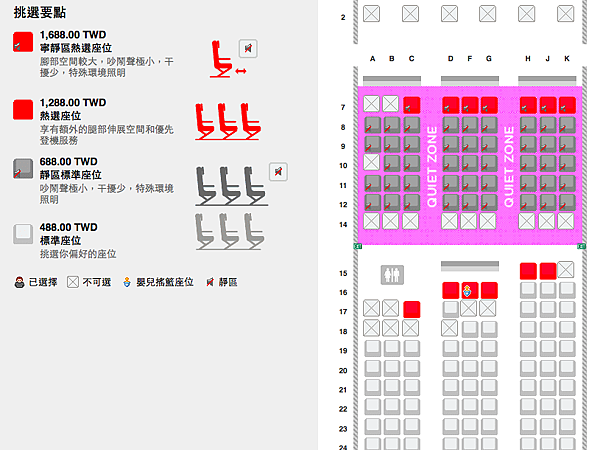 下一格是機上餐食,點一下「選擇」就會出現以下的菜單及金額↓↓↓